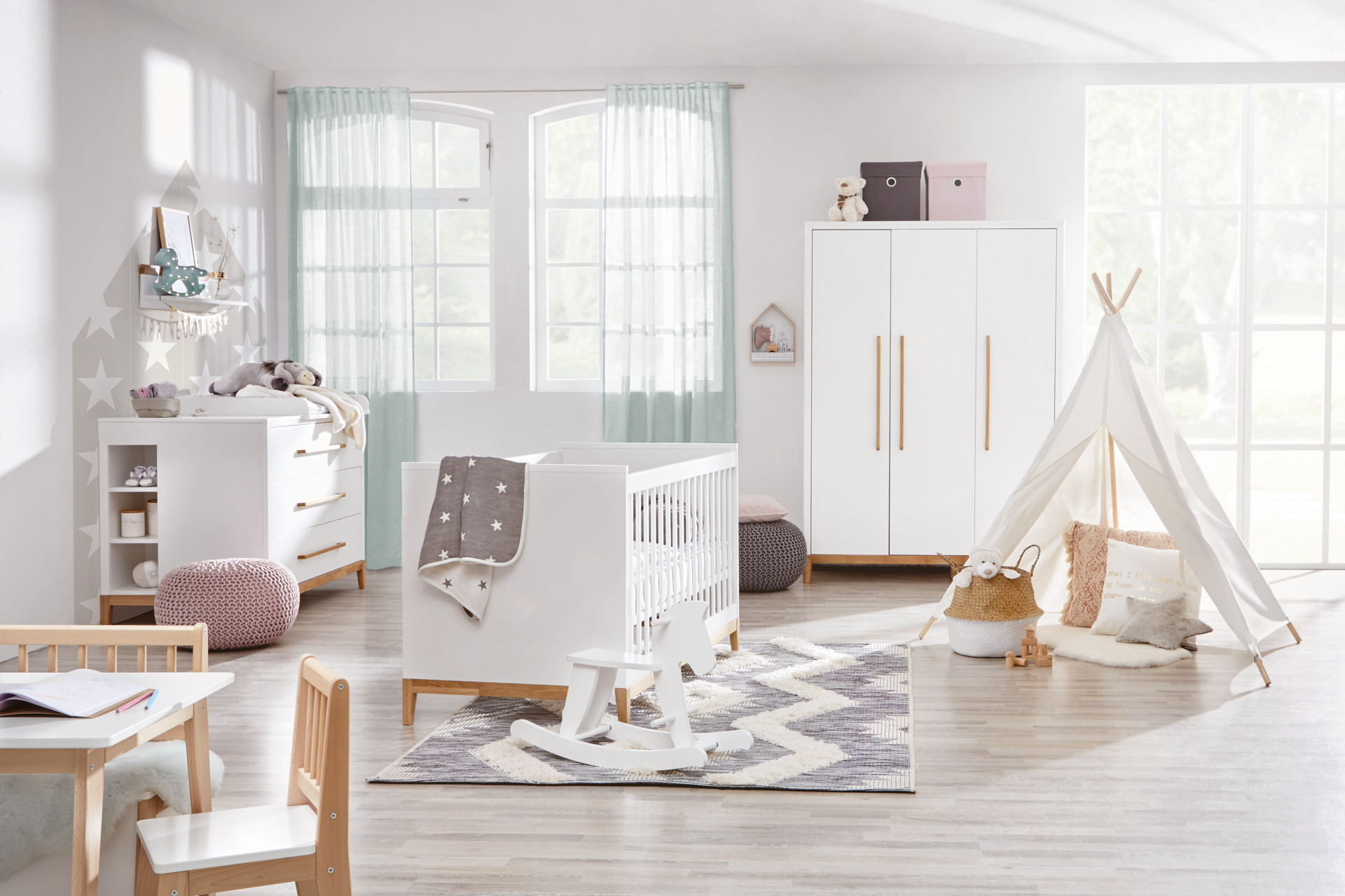 Praktische babyzimmer wandgestaltung mit wandregalen.