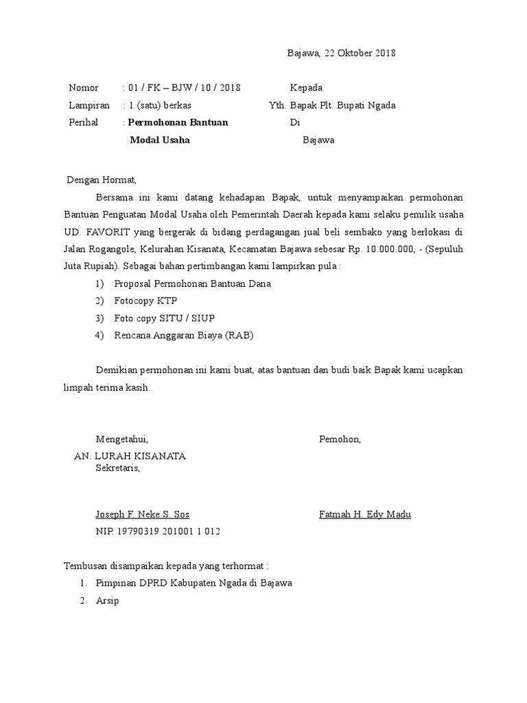 Contoh Proposal Permohonan Bantuan Modal Usaha Perorangan Berbagi Contoh Proposal from cdn.slidesharecdn.com Contoh proposal permohonan bantuan pembangunan masjid. Proposal pengajuan bantuan modal usaha kelompok usaha kecil kue basah jajanan pasar tradisional contoh proposal usaha.pdf. Tunggu dulu, apakah proposal tersebut sudah tepat? Bersama dengan surat ini diajukan proposal usaha kecil mikro & menengah jasa event organizer. Demikian proposal permohonan bantuan bantuan pengadaan perlengkapan alat salon ini kami buat untuk pengembangan kegiatan dan meningkatkan taraf hidup kelompok usaha. Proposal buka puasa bersama anak yatim pdf. Kamu dapat menyimak beberapa contoh kata pengantar proposal usaha berikut sebagai referensi kata pengantar yang akan kamu pergunakan dalam penyusunan proposal tersebut. Ingatlah jika tujuan adanya proposal yang paling utama adalah meminta bantuan dana dan mengajak investor.